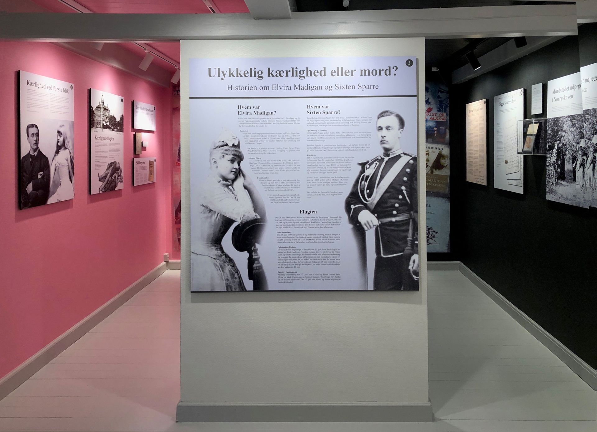 I Forhuset fortælles ligeledes dramaet omkring Elvira Madigan og Sixten Sparres håbløse kærlighed, som fandt sted i Svendborg, Troense og i Nørreskoven på Tåsinge i året 1889. Se vores specielle udstillinger her.