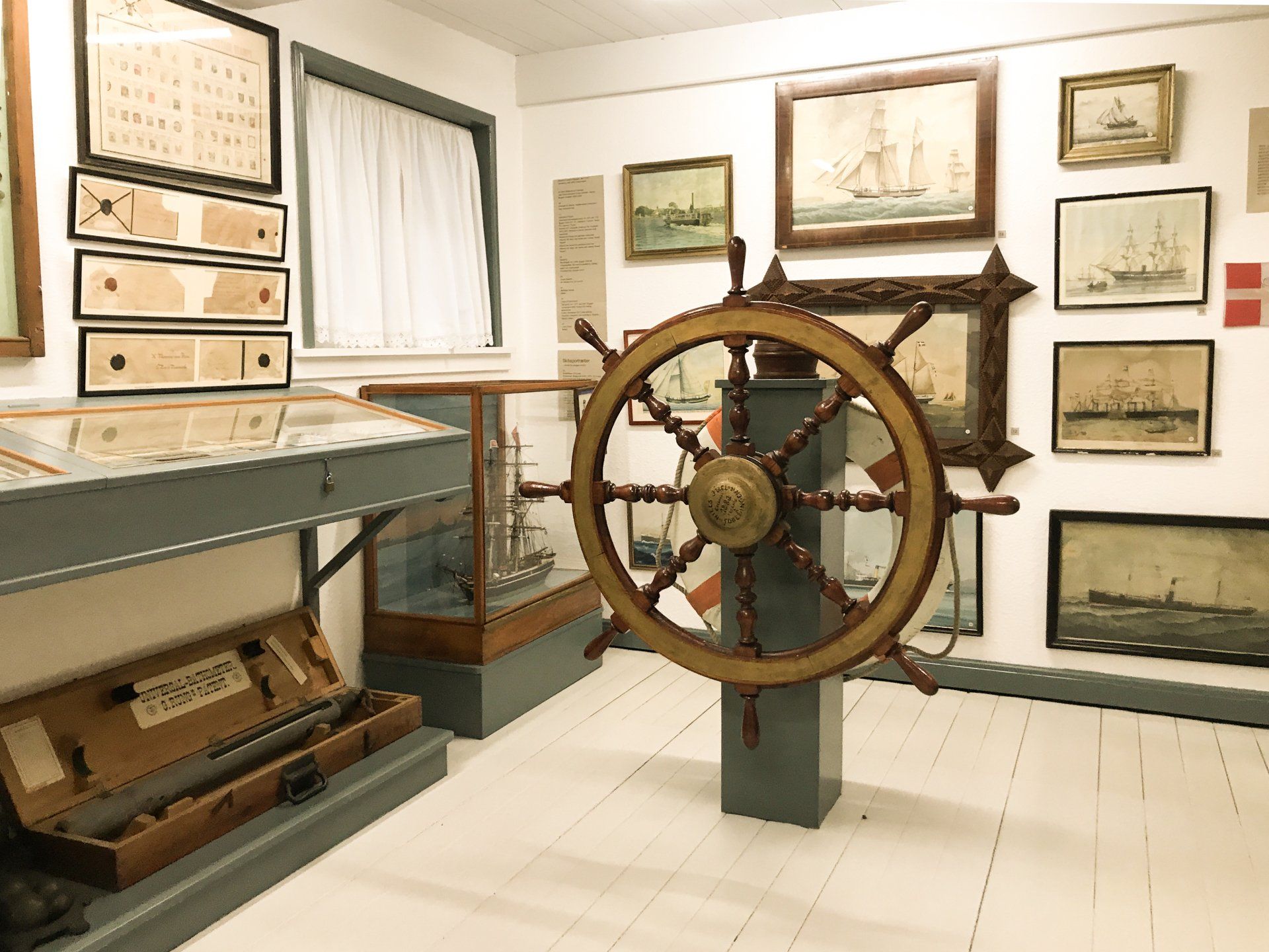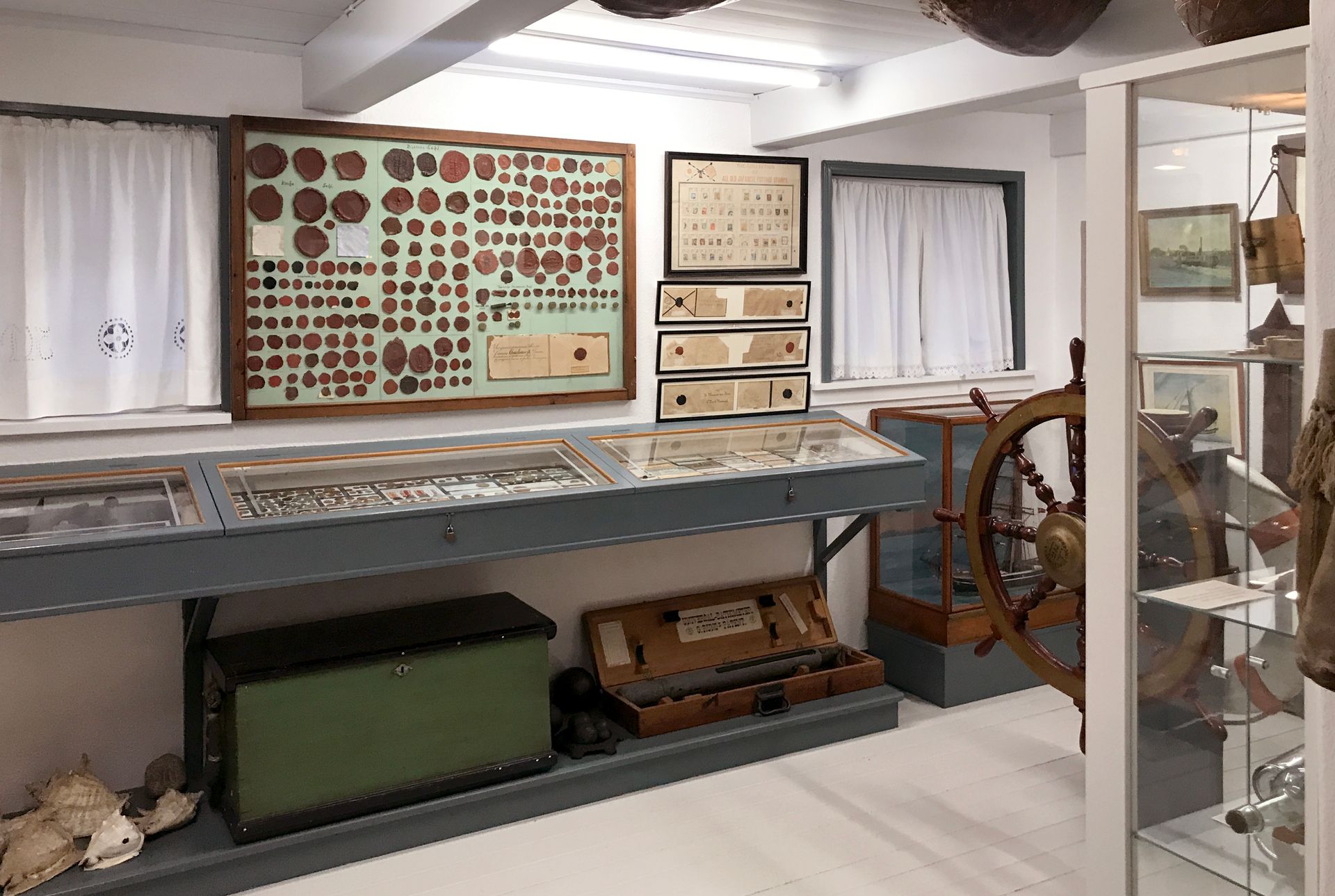 Forhuset har fire udstillingsrum: købmandshandel (reception) Marinestuen og Poul Fredholms rum m. redskaber og stensamlingen.