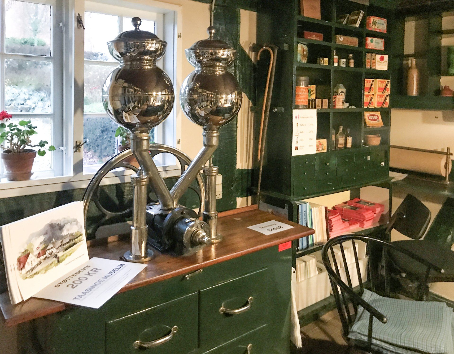 Museumsgæsten bydes velkommen i Esther Fredholms lille unikke købmandshandel fra 1917, som efter hendes død i august 2000 blev flyttet til "Forhuset" på museet.
